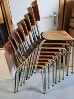 Oude klassieke vintage schoolstoelen. 9 Stuks. Tubax-stijl uit de jaren 50 - 60. Dit model staat bekend om zijn eenvoud, duurzaamheid en praktische stapelbaarheid. Vragen wel wat opknapwerk.