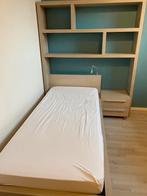 Jeugdkamer bestaande uit eenpersoonsbed met lattenbodem en opbergschuif, nachtkastje met nachtlampje en wandrek. Dit wordt in één lot verkocht. Biedprijs is 300€. Bijkomend te kopen: bureau met l