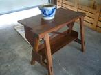 Houten stevig tafeltje met uitklapbaar blad. Mogelijkheid om aan de andere zijde ook een uitklapbaar blad aan te maken. Kan dienen voor bloempotten op te zetten e.a. Afmetingen h 66cm x br 96cm x d 43