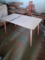 Zeer stevige eettafel. Waarbij het blad een likje verf kan gebruiken. De afmetingen zijn: 140cm x 87cm en 57 cm hoog.