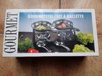 2 gourmetsetjes voor 2 personen. Gourmetpannetjes van 15 cm. 1 Set in inox en 1 set in zwart smeedijzer. In zeer goede staat en zo
