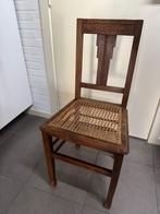 Massief houten stoelen met 'groen' fluwelen bekleede zitting. Prima staat !