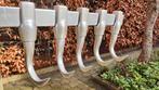 In zeer goede staat uit slagerij jaren 1960-1970 5 vleeshaken 20cm 4 muurbeugels (30cm afstand van muur) profiellengte 3m, kan gemakkelijk ingekort worden. Materiaal: aluminium (professionele kwalitei