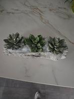 Boomstam in steen met kunstplantjes