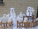 Petits et grands ours polaires accompagnés d'un traîneau (il manque une petite pièce) et d'un paysage hivernal (coton). Les plus grands d'environ 50 cm, les plus petits d'environ 30 cm