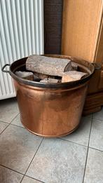 Antieke rood koperen kuip in zeer mooie en goede staat. Hoogte kuip 44cm hoogte kuip + wielen 53cm diameter 55 cm deze werd gebruikt om houtblokken bij de haard te zetten. Prachtig stuk ook decoratief