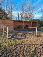 Prachtige schuilhokken / stallingen gemaakt van schorsplanken douglas stalen dakplaten met anticondensscherm degelijke stevige hokken , met deftige constructie ! Op maat en volledig naar de wens van d