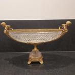Coupe ovale en cristal de sèvres taillée en pointes de diamant biseautées et montée dans un support en bronze doré, reposant sur une base carrée à qua