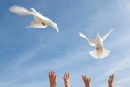 Witte duiven geschikt voor elke gelegenheid. Optie1 : de duiven worden door jullie opgehaald, is 70€ voor 2 duifjes, het is o