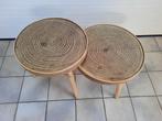 2 bijzettafeltjes in hout met glazen bovenblad stevige tafeltjes met transparant glazen blad (dikte 7mm) afmetingen: 1.hoogste mod