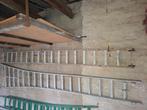 Houten ladder in goede staat (onderste grijze van de foto) op de foto zie je 2 grijze ladders. Enkel de onderste van de 2 is in de aanbieding. 4 Meter lang