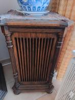 2 stuks massief eiken hulzen die gemaakt werden om over boxen te plaatsen. Is hol vanbinnen. Kan gebruikt worden als bijzet tafel.