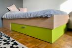 Stevig en mooi eenpersoonsbed voor een tienerkamer. Bed met lattenbodem en handige opbergschuif of studentenkot. Goed onderhouden, geen beschadiging.