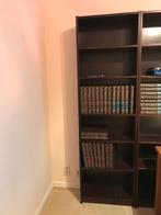 2 nog mooie boekenkasten, of opbergrek van donkerbruin hout. 2 Kasten van een verschillende afmeting die apart kunnen staan of sam
