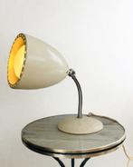 Zwitserse beige belmag bureau of tafellamp uit de jaren 60. Zware gietijzeren voet. Vernikkelde arm. Originele bedrading en stekker. Mooie staat mits enkele ouderdomssporen. Hoogte rechtstaand: 36cm h