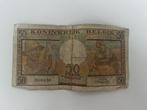 Un billet de 50 francs belges authentique (royaume de belgique). Le billet est vintage et présente des signes d'usure évidents (plis, usure), ce q