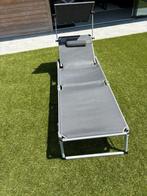 Ligbed met verstelbaar hoofdeinde en zonwering. Antraciet zo goed als nieuw 2 identieke ligbedden beschikbaar enkel afhalen regio brugge