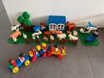 Doos vol met blokken, dieren, poppetjes, helikopter, moto,… ( doos inbegrepen)