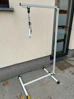 Bedhulp, bedheffer, bed hefframe, opstahulp. Inklapbaar, met voet/vloerstatief, inclusief verstelbare band en handgreep; wit epoxy gecoat staal, maxim