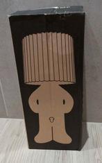 De voet van de lamp is een wit mannetje en op z'n hoofd heeft hij een groene lampenkap waarin hij z'n hoofdje verschuild