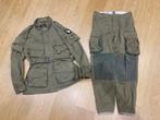 Reproduction de tenue m-42 para renforcée avec poches supplémentaires typique de certains régiments de la 101 airborne division. Taille 44r pour la veste, 32r pour le pantalon. Belle patine d’utilisat