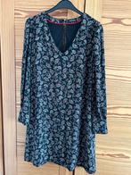 Robe fond noir motifs corail, beige , bleu t 40/42 (manche longue ) doublée / encolure v