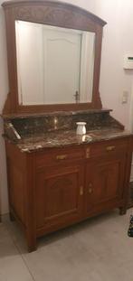 Bonjour, je vends ce joli meuble ancien. Le miroir est biseauté et le marbre est en très bon état. Il se compose de 2 tiroirs et de 2 portes. Largeur: 110 profondeur : 50 a retirer sur châtelet. Regar