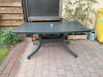 Tuintafel hartman 160 cm x 93 cm (hoogte 70 cm) in kunststof antracietkleur. Rechthoekig met afgeschuinde hoeken. Met 5 stoelen m