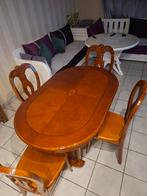 Table robuste en bois avec 4 chaises également en bois, à rafraîchir.