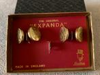 Boutons de manchette en métal doré avec chaîne extensible. Acheté au début des années 1960. Fabriqué en angleterre. Avec boîte d&#
