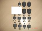 4- ertalon wieltjes met inox bouten van m8. Diameter=48,5mm,binnendiameter=30mm;breedte=23mm;gleuf- breedte=15mm;gatdiameter=10,5mm. Prijs/stuk=5€. Conditie: gebruikt