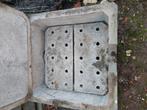 Raam meranti, dubbel open draaiend. Dagmaat (afmeting tussen facadesteen) 130cm hoog op 120 cm breed. Nog in goede staat, niks rot, enkel een laagje v