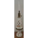 Prachtige quinquet in porcelein en koper 4-delig: voetstuk oliereservoir wiekhouder lampenglas totale hoogte: 80 cm