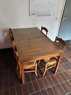 Tafel 50€ afmetingen 180x90 en 75 hoog stoelen 10€ per stuk opgelet enkel en alleen op een zaterdag om 13.30U af te halen. Geen uitzonderingen. Zolang dit hier staat is het beschikbaar.