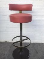 Lederen barkrukken met ijzeren voet( zwaar) zalmkleur leder in goede staat 3 stuks draait naar links en rechts niet in hoogte verstelbaar hoogte zit 80 cm hoogte rug 97 cm