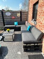 Leuke tuinset, gebruikt met gebruikssporen. Nieuwprijs 520€! Nu 150€ 4 sets tuinkussens 2 kleine tuinkussens blauw 1 klein kussen 8 geschilderd europalletten ophalen in rijkevorsel