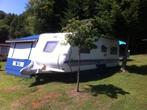 Le hobby 610 ul, construit en 2006, double essieu avec l'auvent levooz caravan à matton-et-clémency, (f)