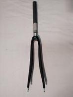 Voorvork racefiets van het merk 4za in full carbon voor bandenmaat 700x23 of max. 700X25 (gaat nipt). Kleur zwart-carbonmotief met