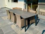 Tuintafel 240x100cm, alu onderstel, volkeramisch blad. Zeer goede staat, nieuwprijs in 2023 was 1600€. Gratis 6 tuinstoelen i