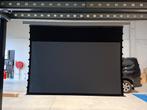 Nieuw elektrisch projectiescherm. Dit soort opgespannen scherm wordt verkocht voor projectie met short throw beamers. Er zijn echter enkele kleine golvingen ingekomen waardoor je perfect beeld nog heb
