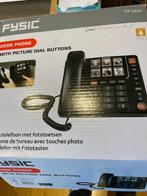 Seniorentelefoon voor aansluiting op vaste lijn. Klavier bevat 6 grote toetsen met transparant dekplaatje, waaronder een foto kan