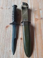 Us m3 camillus garde 100% original ww2 en très bon état du terrain .lame bleutée d origine de 167 mm presque complète.pas de jeu dans la poignée bien ferme et non craquée + fourreau usm8 bmco court 10