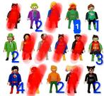 Kindersurprise playmobil dc hierbij onze dubbele figuurtjes. Aantallen staan erbij. Zelf zoeken we harley quin en willen hiervoor
