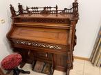 Mooi versierd harmonium. De klank is goed. Het lint van 1 pedaal is afgebroken, maar dat kan gemakkelijk hersteld worden. Te belui
