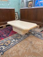 Très belle table basse ancienne en travertin, la table basse se compose de 2 parties (le pied et le plateau), toutes deux assez lourdes, la table basse est en très bon et bel état, la table présente u