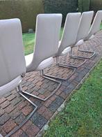 6 stevige stoelen met schade. Deze kun je eventueel zelf herstellen of laten overtrekken. Zelf af te halen in bree.
