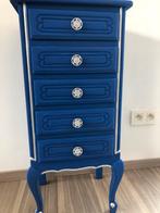 Solden !!! Deze ladenkast is gepimpt met originele schaapjes. De zijkant is voorzien van strepen en vooral afgewerkt met lichtblau
