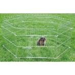 Volledig in kippendraad (zijkanten en dak ) voorzien van afdakzeil zodat de dieren beschermd zijn tegen regen en zon . Verkrijgbaar in verschillende a