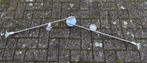 Metaalkleurige plafondlamp te koop met 4 lichtpunten te koop. De lamp bestaat uit 1 aansluiting. Lengte van de lamp is 132 cm