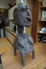 Ancien masque africain. Portée sur la tête, la tête se positionne entre les quatre jambes de la statue. Le porteur peut voir à travers deux trous placés à cet effet.